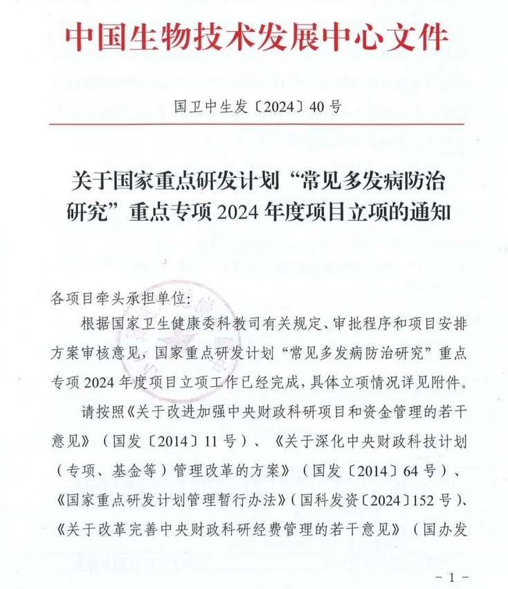 熱烈祝賀申瑞生物聯(lián)合申報(bào)的“國(guó)家重點(diǎn)研發(fā)計(jì)劃項(xiàng)目”獲批立項(xiàng)!!! 2025-01-15 近日,申瑞生物與北京大學(xué)第一醫(yī)院等聯(lián)合申報(bào)的國(guó)家重點(diǎn)研發(fā)計(jì)劃項(xiàng)目正式獲批。 由北京大學(xué)第一醫(yī)院牽頭,中國(guó)人民解放軍東部戰(zhàn)···